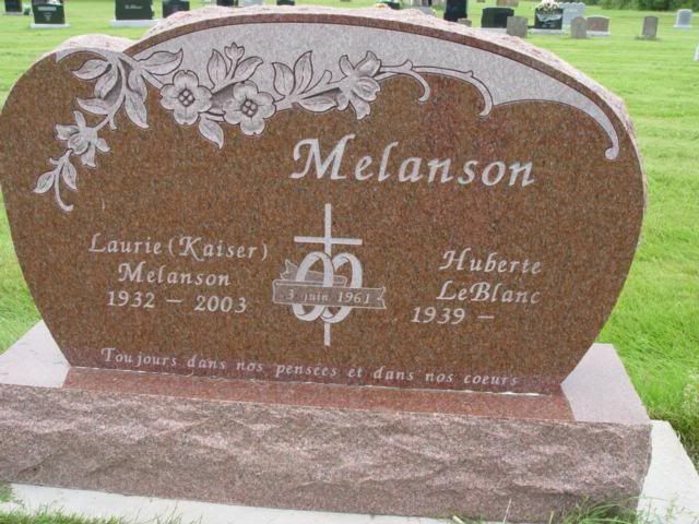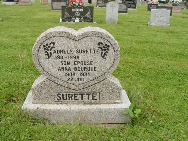 These are thumbnails - clicking on one will open a new window that will take you to the full sized photo. You are able to scroll through the tombstone photos even as the page is loading. Song: Pitie Mon Dieu © Lucie LeBlanc Consentino Acadian & French Canadian Ancestral Home 2006 - Present Please Navigate This Web Site Using The Sidebar To The Left If You Do Not See A Sidebar Click Here